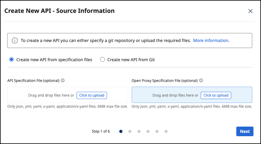 2. Upload the specification file and select Next.