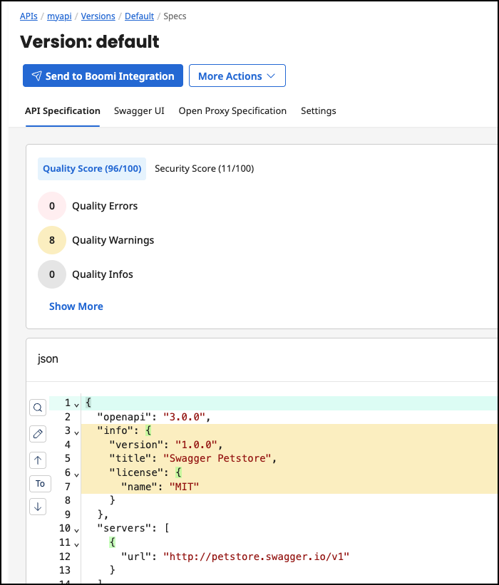 The Send to Boomi Integration feature streamlines the implementation of APIs with Boomi Integration. You can design or import an OpenAPI specification file and send it from API Control Plane to Boomi Integration with one click, where it creates an API Service component with input/output profiles and process stubs for each defined operation. An integration developer can use these stubs to quickly implement the API logic and connectivity.
