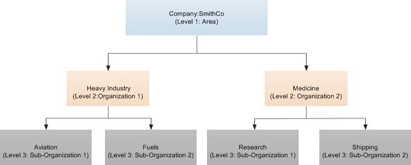 In the above example, SmithCo has two business units: Heavy Industry(Organization 1) and Medicine (Organization 2).