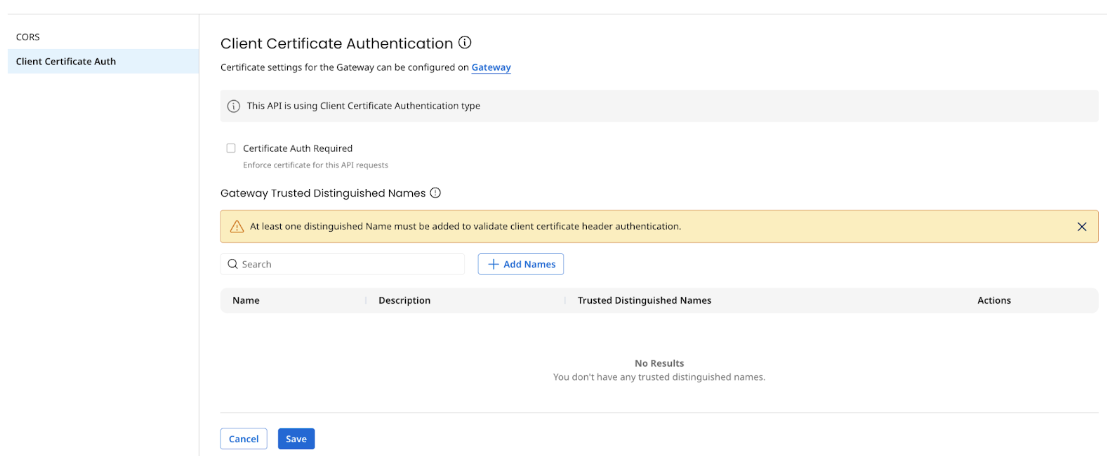 Follow these steps to configure Client Certificate Authentication in a Gateway: