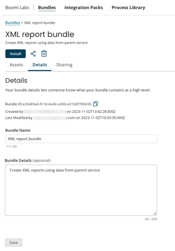 The Bundle Details page provides a high-level overview of the contents of a Bundle. To edit the information of a Bundle: