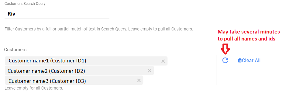 Refreshing the Customers/ Campaigns field may take several minutes to pull all IDs and names. Once you select your customers or campaigns, make sure to copy this river to pull other reports (the customers or campaigns are saved between copied rivers).