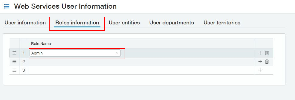 Select the + icon located next to the Web Services users tab.