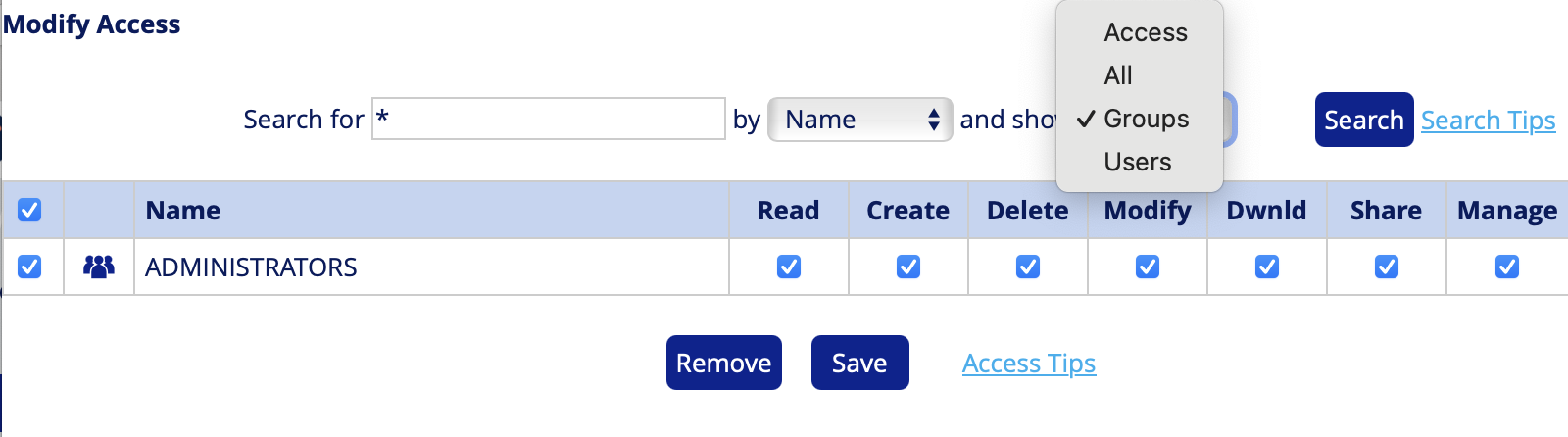 Modifying access to groups