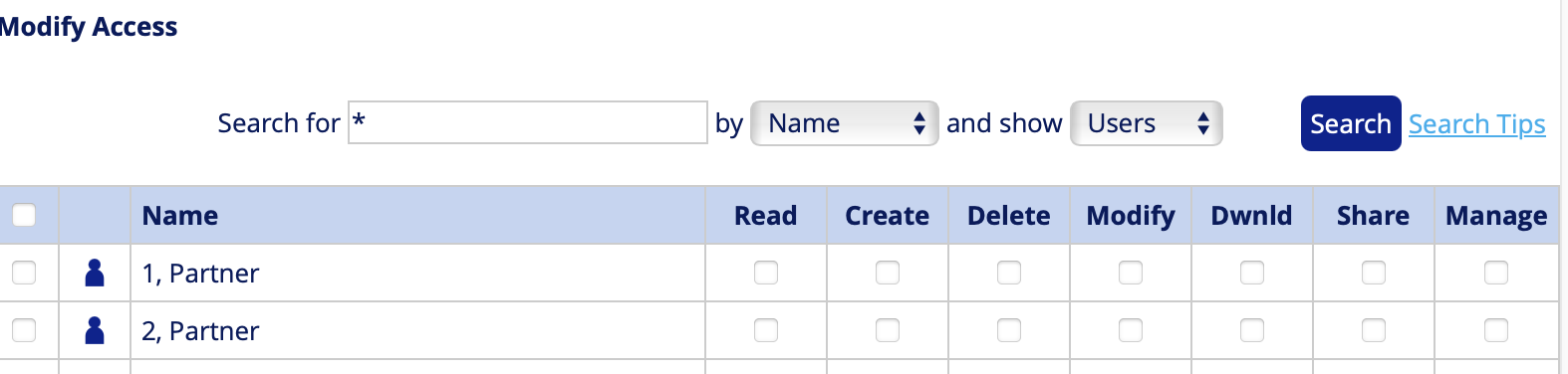 Select Users from the list and click Search to provide individual users access to the folder.