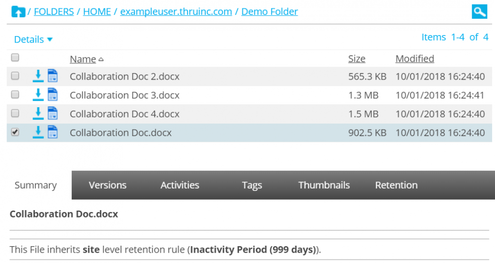 For example, the file “Collaboration Doc.docx” is subject to a folder-level and file-type rule.